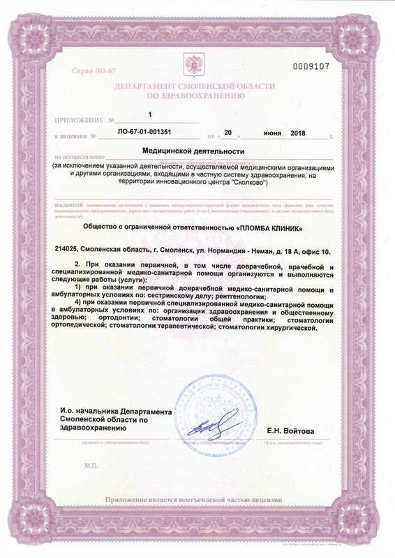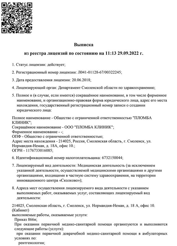 Преимущества: Прекрасная клиника с мастерами своего дела! Я безумно давил на проделанной работой, позже буду ставить здесь коронки, персонал весь вежливый, врач Алеся Александровна просто лучшая! Очень долго выбирала клинику в Смоленске, ни пожалела вообще!